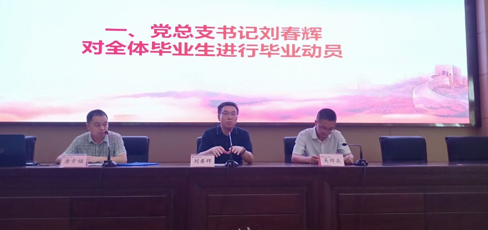 6月10日下午,公司在学术报告厅A厅召开2019届毕业生教育与动员大会。党总支书记刘春辉、党总支副书记吴辉兵、学工办主任唐幸福出席,2019届毕业生参加会议。