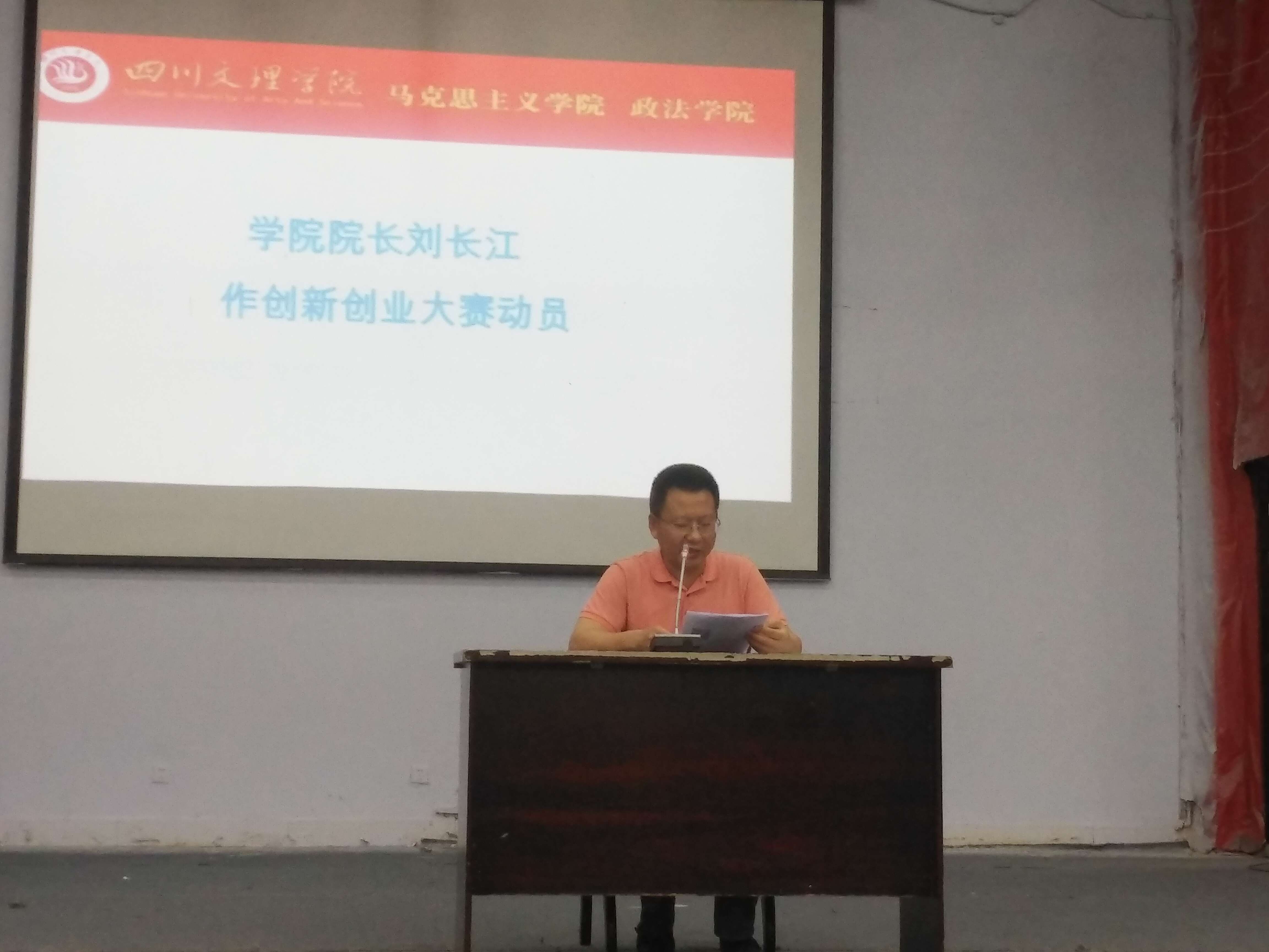 刘长江经理从创新创业大赛的宗旨、目的与任务、比赛要求与报名等方面作大赛动员。刘经理讲到,创新创业是时代的主旋律,"互联网+"员工创新创业大赛是为了加快创新创业人才培养,持续激发广老员工创新创业热情,展示创新创业教育成果,搭建员工创新创业项目与社会资源对接平台。本次大赛的目的与任务是以赛促学,以赛促教,以赛促创。他详细地讲解了比赛的要求与报名方式,鼓励大家根据“互联网+”结合学院学科专业特点积极申报参赛项目,尤其要利用学科专业优势,组织参赛团队成员与企业和教师等组成法治中国小分队、政策宣讲小分队或项目团队组团等形式深入革命老区、贫困地区,接受思想洗礼、学习革命精神、传承红色基因。