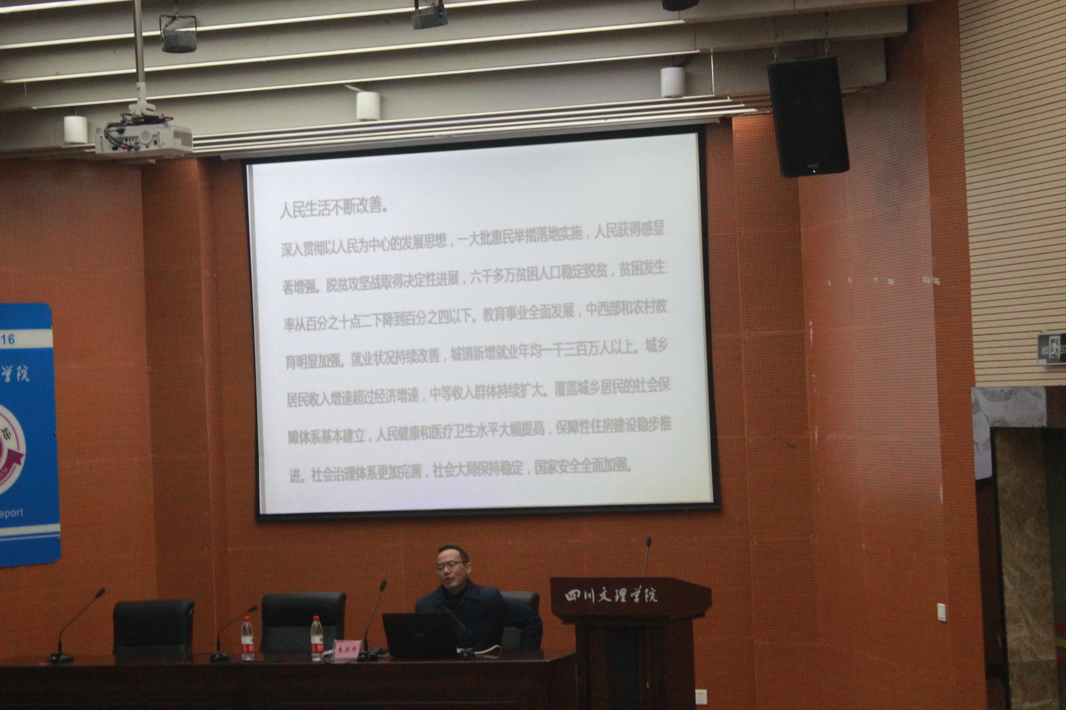 朱教授主要从新时代中国特色社会主义的深刻变革、伟大实践、理论指导、基本方略、战略安排、行动纲领、坚强领导等七个方面全面深入解读了十九大精神。讲座中,朱教授理论联系实际,列举大量鲜活案例,生动直观、深入浅出地诠释了十九大精神。近两个小时的讲座,朱教授的讲解始终激情澎湃,充满信心,传递满满的正能量,让在场同学更加坚定“四个自信”。此外,朱教授语言幽默,注重师生互动,充分调动了聆听同学的积极性。