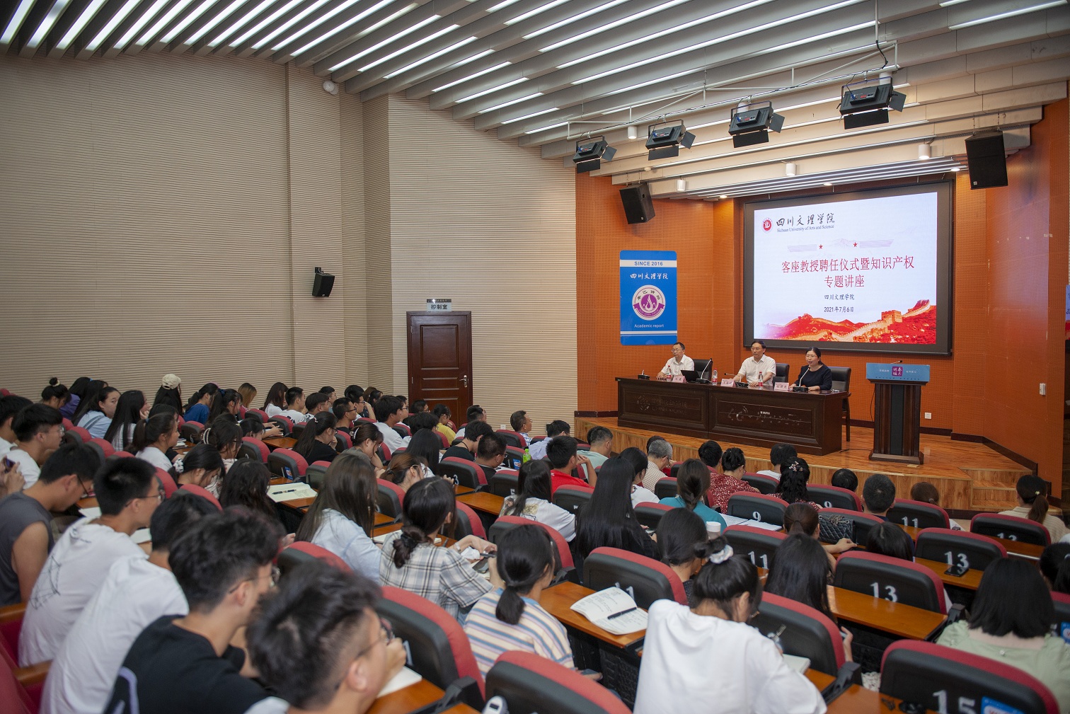 达州市科技局、知识产权局等部门负责人,知识产权学院师生200余人参加客座教授聘任仪式并聆听讲座。