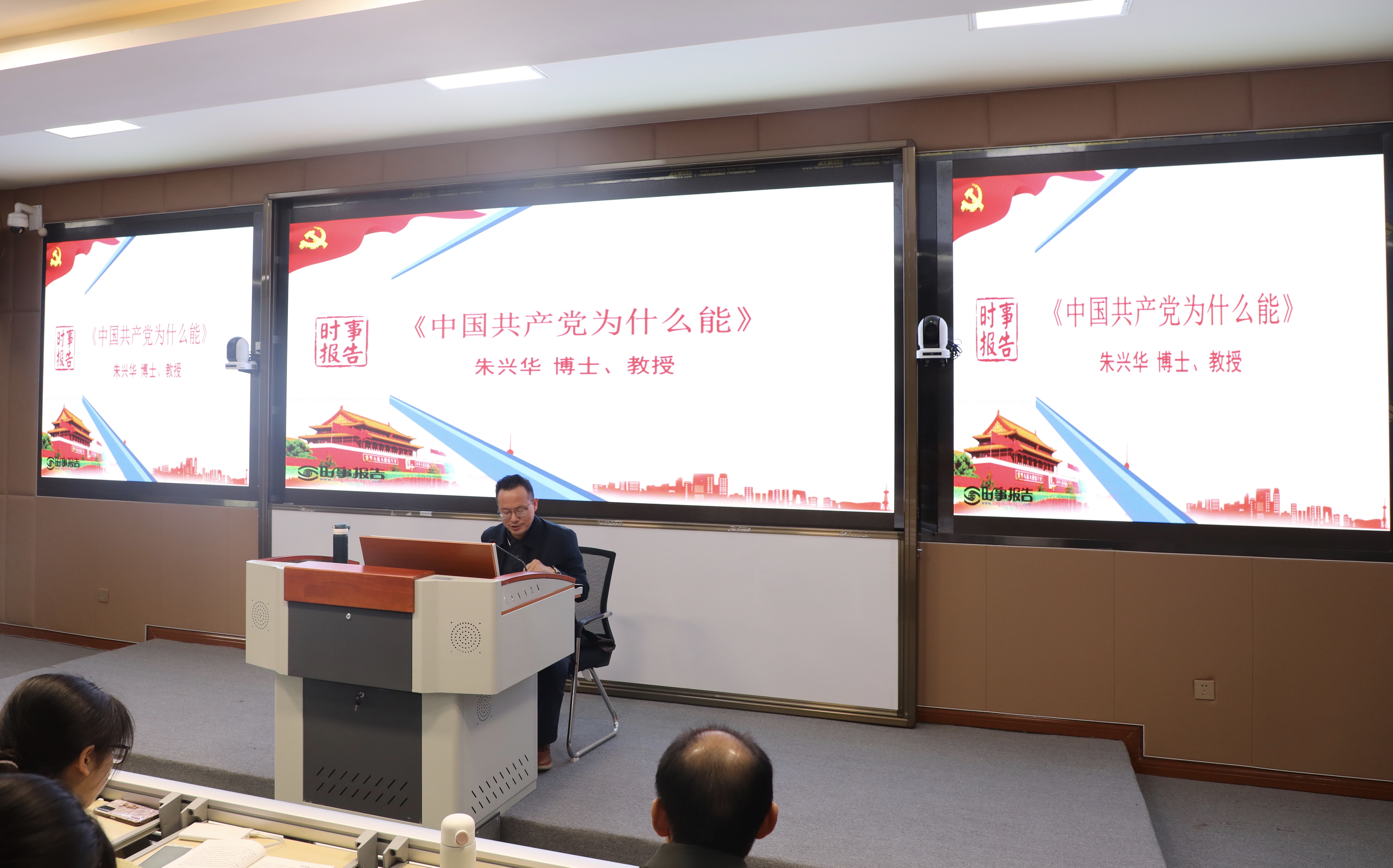 为深入学习贯彻习近平总书记关于党史的重要论述和党中央决策部署,4月26日晚,公司党委常委、副董事长朱兴华教授在博文楼313教室为外国语学院部分学子讲授题为“中国共产党为什么能”的《形势与政策》课。外国语公司党政领导班子及部分教师参加。