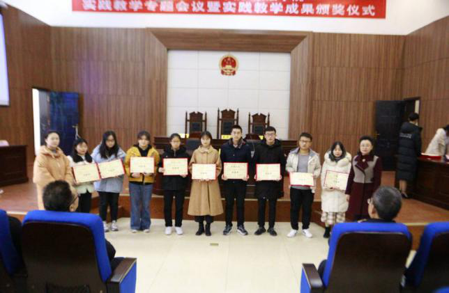 随后,由学院领导和老师为在口述史征文比赛、师范技能大赛、多媒体课件制作大赛、模拟法庭大赛等多项实践教学竞赛活动中获奖的同学颁发了证书。