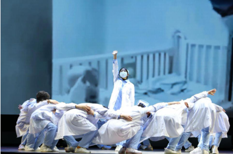 小品《大爱无疆》反映白衣天使在疫情面前,不顾个人安危,主动请缨奔赴前线的逆行壮举,舞蹈《春暖花开》表现医务工作者与时间赛跑,与死神较量,抗击并战胜新冠疫情,使封城的武汉市恢复生机的景象。