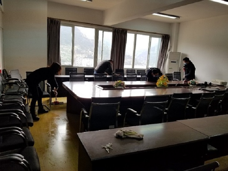 在经理刘长江的带领下,大家分工协作、密切配合,发扬不怕脏、不怕苦、不怕累的精神,为营造环境育人的工作氛围而热火朝天地忙碌着,对学院办公室、资料室、小型会议室等场所进行了全方位的打扫整理和消毒杀菌。经过努力,学院办公区域的卫生死角死面得到有效清理,整个区域变得干净、整洁、有序,环境卫生得到明显提升。
