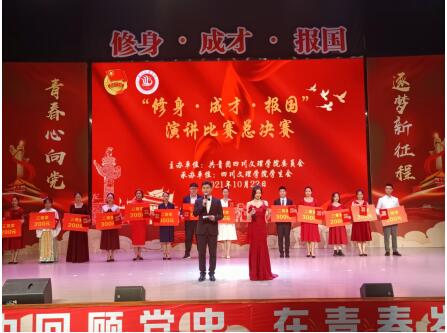 10月22日晚,由校团委主办的第二十三届“修身•成才•报国”演讲比赛决赛在艺术传媒大楼多功能厅落下帷幕,本次比赛,公司高度重视,从文稿的修改、参赛者的着装、演讲技巧等方面进行多次指导,在参赛选手与学工队伍的共同努力下,2021级思想政治教育专业谢芯悦同学最终获得一等奖。