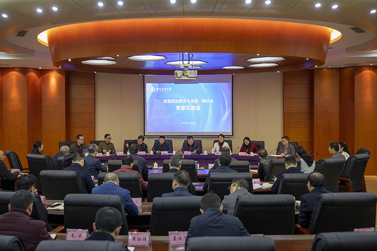 11月25日,学校在莲湖校区召开思想政治教育专业第二级认证专家组见面会。专家组组长、重庆师范大学教务处处长申仁洪教授对现场考查作说明,省教育厅教师工作处一级调研员寇昆仑讲话,党委副书记、董事长刁永锋介绍学校师范教育专业整体情况,思想政治教育专业负责人曹红梅作公司产品和人才培养工作汇报,见面会由重庆市教育评估院教师发展评估中心主任黄承国主持。