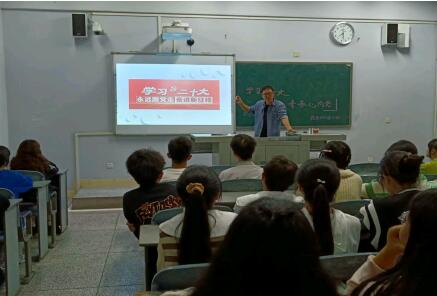 为进一步深入学习、宣传和贯彻党的二十大会议精神,10月23日,学院各教学班在博文楼教室召开“学习二十大,青春心向党”主题班会,各班辅导员老师主持班会,带领同学们学习党的二十大报告内容。