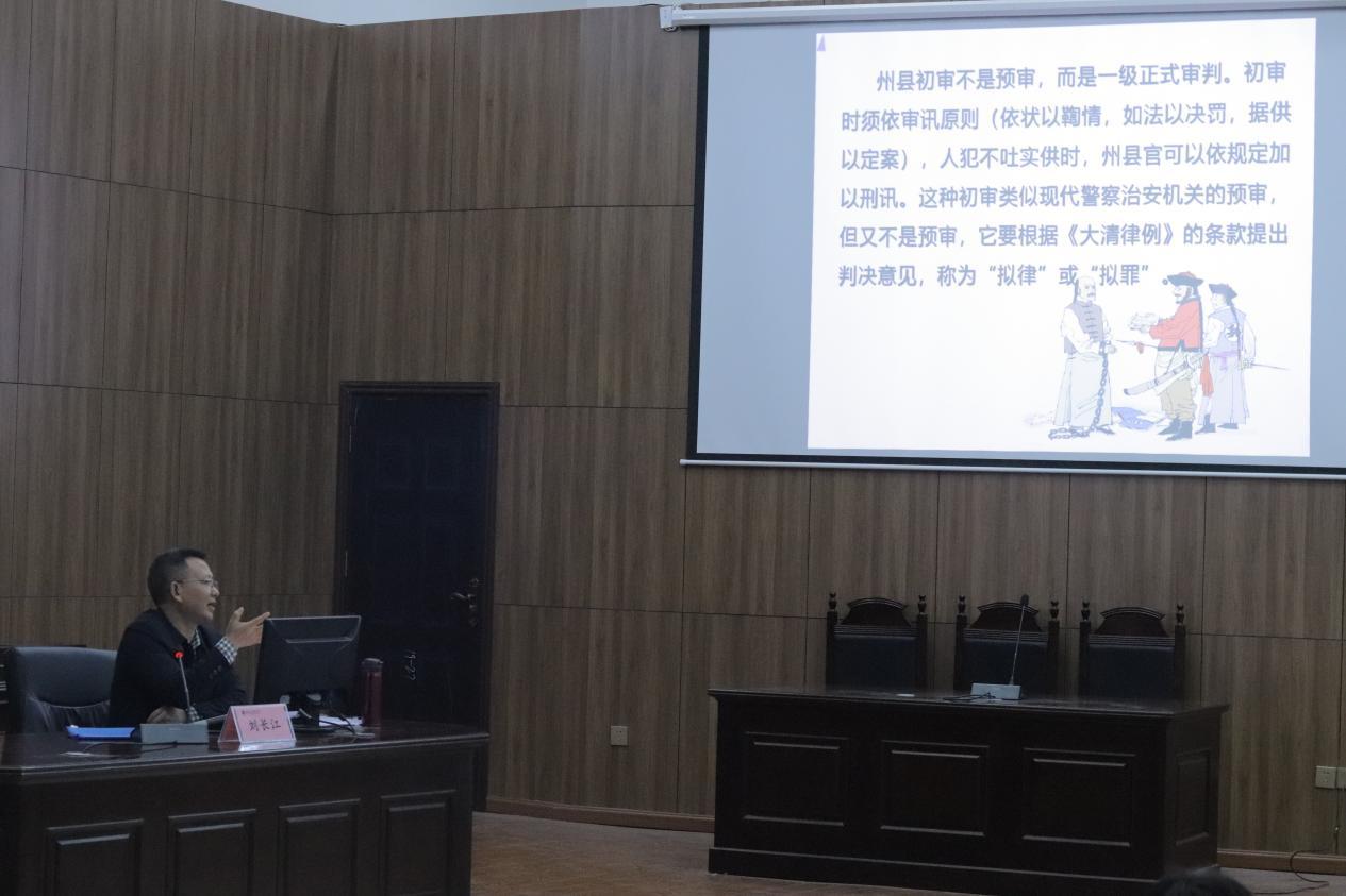 10月26日晚,经理刘长江教授在博文楼113教室作题为“从杨乃武案透视晚清司法制度之弊端”的学术讲座,党总支副书记刘良训、2020级2班、4班、2022级7班全体同学参与讲座聆听。
