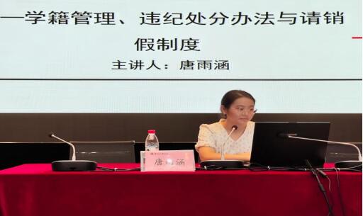 唐雨涵老师从安全教育出发,强调规章制度,详细讲解学籍管理、违纪处分办法与请销假制度。并结合过往案例进行具体分析,强化纪律建设,增强规矩意识,严格执行各项规章制度,不断提升个人综合素养。