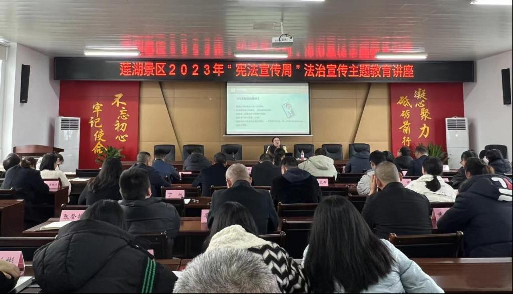 2023年12月4日,公司教师杨爽赴莲花湖管委会作普法讲座。本次活动以“大力弘扬宪法精神、建设社会主义法治文化”为主题,中共达州市通川区委依法治区办公室、达州市通川区司法局、达州市通川区莲湖景区及韦德官方网站、知识产权学院共同主办。