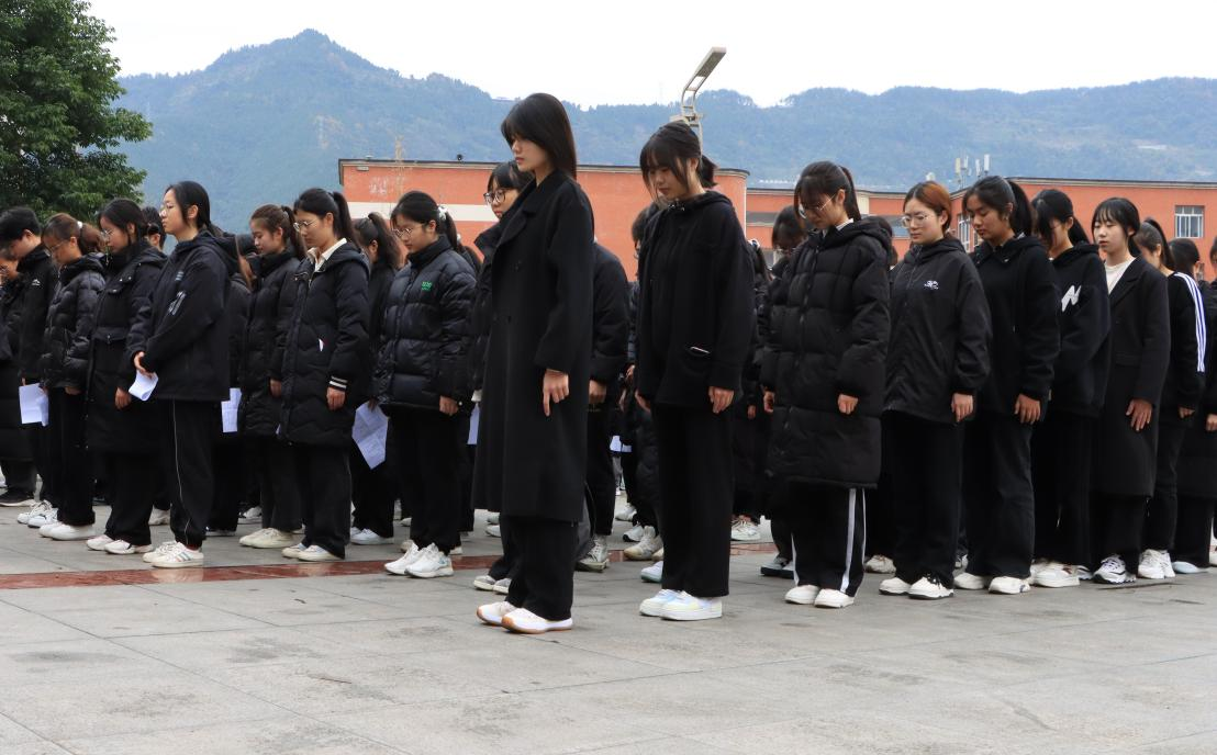 12时20分,在岳书记的带领下,大家进行默哀仪式,全体人员垂首肃立,为死难者同胞沉痛默哀3分钟。随后,由唐幸福老师带领大家进行了公祭宣誓的仪式。“前事不忘,后事之师。”的声音响彻整个广场。