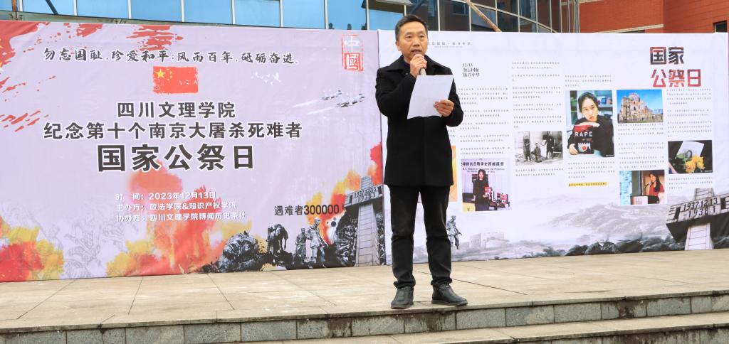 12月13日,博闻历史茶社在音演广场组织开展了南京大屠杀死难者国家公祭日主题活动。此次活动是由学院主办、博闻历史茶社承办。公司党委书记岳臣忠、学工办主任唐幸福、历史学教研组主任王盟等到场参加活动。
