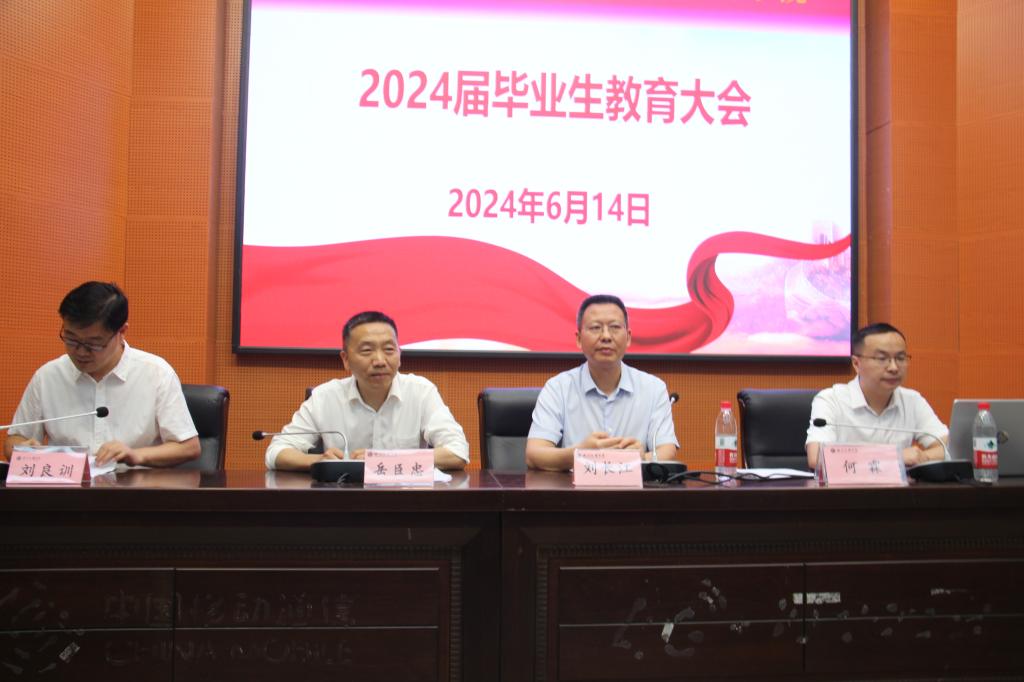 经理刘长江教授首先代表学院向2024届全体毕业生致以热烈祝贺和诚挚祝福,对为学院发展做出贡献的同学们表示感谢。他勉励同学们风雨人生路上,要守好人之本心,走好自己的人生路,在自己时区里做最好的自己;要保持平常之心,不盲目仰望别人,惯于反躬自省,善于在失败中得教训,勇于在黑暗中提灯前行,超越自我,书写精彩人生;要永葆进取之心,深刻领会做人做事埋头苦干实干为要的精髓,勇于在事上磨练自己,在执行中实现自我,一步一脚印,于平凡中活出有价值的人生;要常怀奋勇之心,不为外物所动,不为忧患所扰,勇敢面对人生沟沟坎坎,用坚韧成就美好人生。