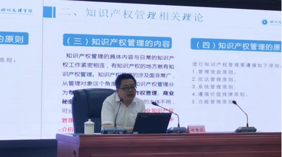 为进一步提升全市基层管理人员的知识产权保护意识,推进知识产权保护工作,2024年6月20日,公司教师、四川省知识产权培训(bevictor伟德官网)基地办公室主任谢腾欧应邀在市委党校为“全市乡镇(街道)党(工)委副书记培训班”做“知识产权管理赋能乡村振兴”专题讲座。