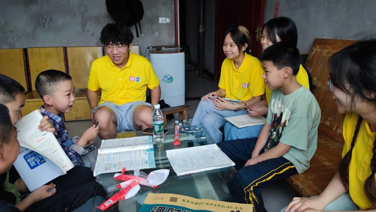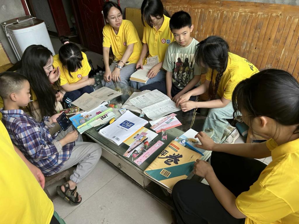 留守儿童辅导和陪伴活动由三个小组的团队成员分别在不同时段完成。他们给村里的孩子们辅导暑假作业,耐心细致地给他们答疑解惑,关心他们的生活日常、兴趣爱好、未来规划;召集孩子们进行游戏和广场舞文艺表演活动,与孩子们搭建起彼此友谊与信任的桥梁;带领孩子们在乡间漫步,识作物、摘果子,共同感受田野魅力等。团队给予孩子们真诚的关心和友好的陪伴,和他们建立了良好的情感链接。孩子们在游戏和活动中也放松心情、释放了压力,他们的笑容,如同阳光穿透云层,温暖而明媚。