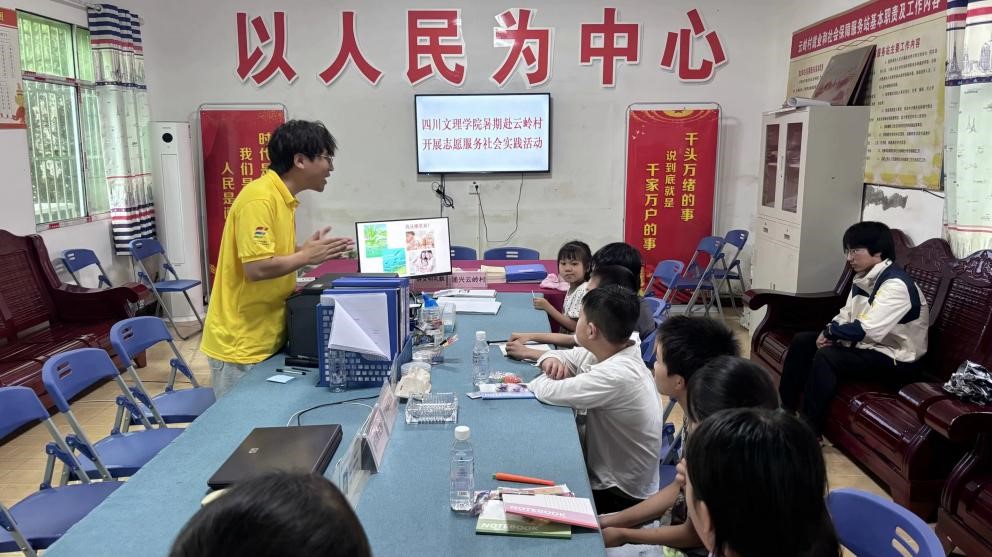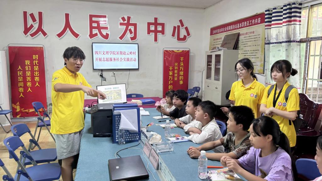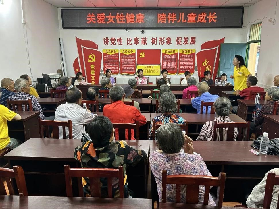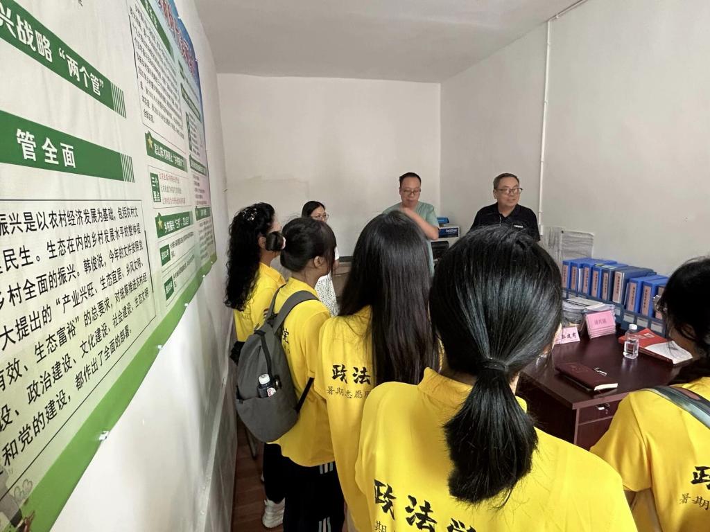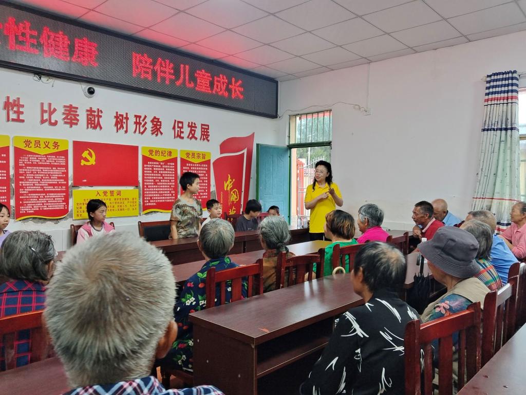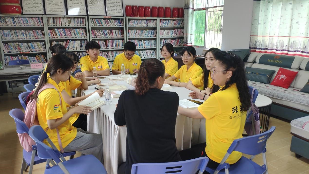 志愿服务团队到云岭村的第一项就是开展村情调研。在村委会小礼堂举行了简单的启动仪式之后,村干部给我们介绍了云岭村的经济状况以及妇女儿童的相关情况。通过介绍,我们得知该村是一个合并村,留守儿童和孤儿高达300余人,留守妇女253人,村里妇女儿童存在心理健康和思想困惑、健康和安全等问题;随后我们参观了村委会办公室、便民大厅、图书阅览室、“两邻”文化长廊以及村广播站。每到一处,村干部都耐心解答我们的疑问,让团队对云岭村有了更深入的了解。文化的传承,服务的便捷,邻里之间的和谐,每一处都彰显着云岭村的活力与温度。