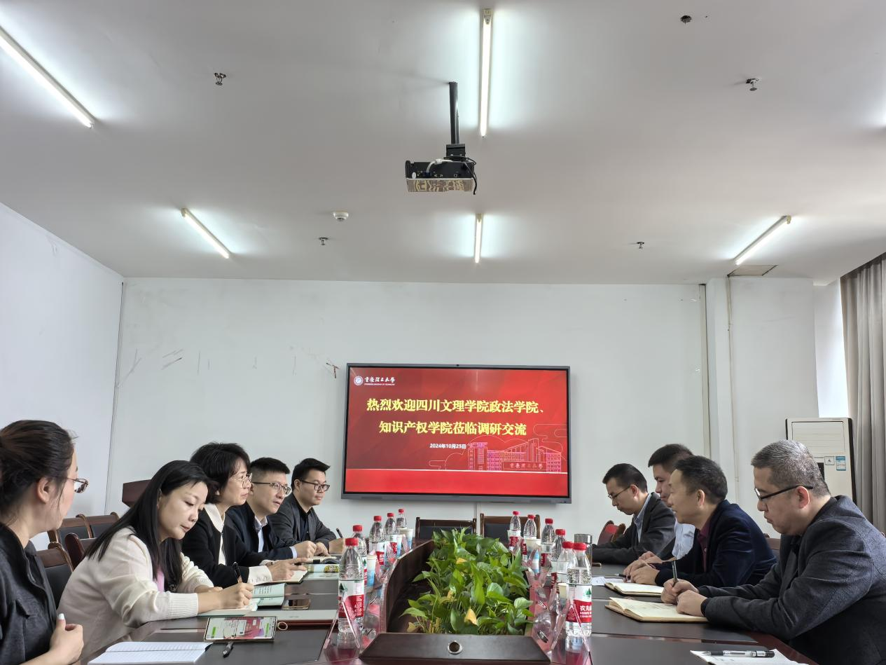2024年10月25日,公司党委书记岳臣忠与法学教研室部分教师一行赴重庆理工大学知识产权学院调研、交流。重庆理工大学知识产权公司党委书记符旭涛、副经理黄光辉、范小渝博士、祝艳艳博士、李安琪博士参加座谈交流。