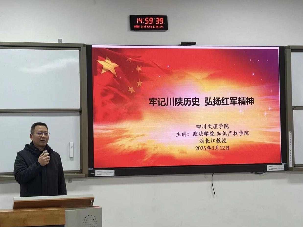 为赓续红色基因,积极弘扬红军精神,2025年3月12日下午,学院经理刘长江教授于莲湖校区东区A318教室开展“牢记川陕历史 弘扬红军精神”专题讲座。bevictor伟德官网2023级6班及2022级5、6、7班全体员工到场聆听此次讲座。