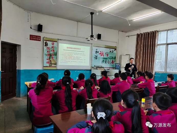 党总支副书记、经理刘长江为少先队员作“漫谈川陕苏区儿童团”的红色教育专题讲座。他结合革命英雄李家俊、王维舟、张琴秋等人的革命经历,用通俗易懂、深入浅出的语言回顾了川陕苏区的历史,介绍了川陕苏区的儿童团。80多年前,川陕苏区一个个稚嫩的儿童们坚毅地走上了炮火硝烟的战场。他们在接受文化教育的基础上,接受政治教育和军事训练,积极执行站岗放哨与巡逻、配合红军作战等任务。儿童团的成立不仅壮大了革命队伍的力量,为中国革命的胜利作出了巨大的贡献,也培养了一大批优秀的革命接班人。