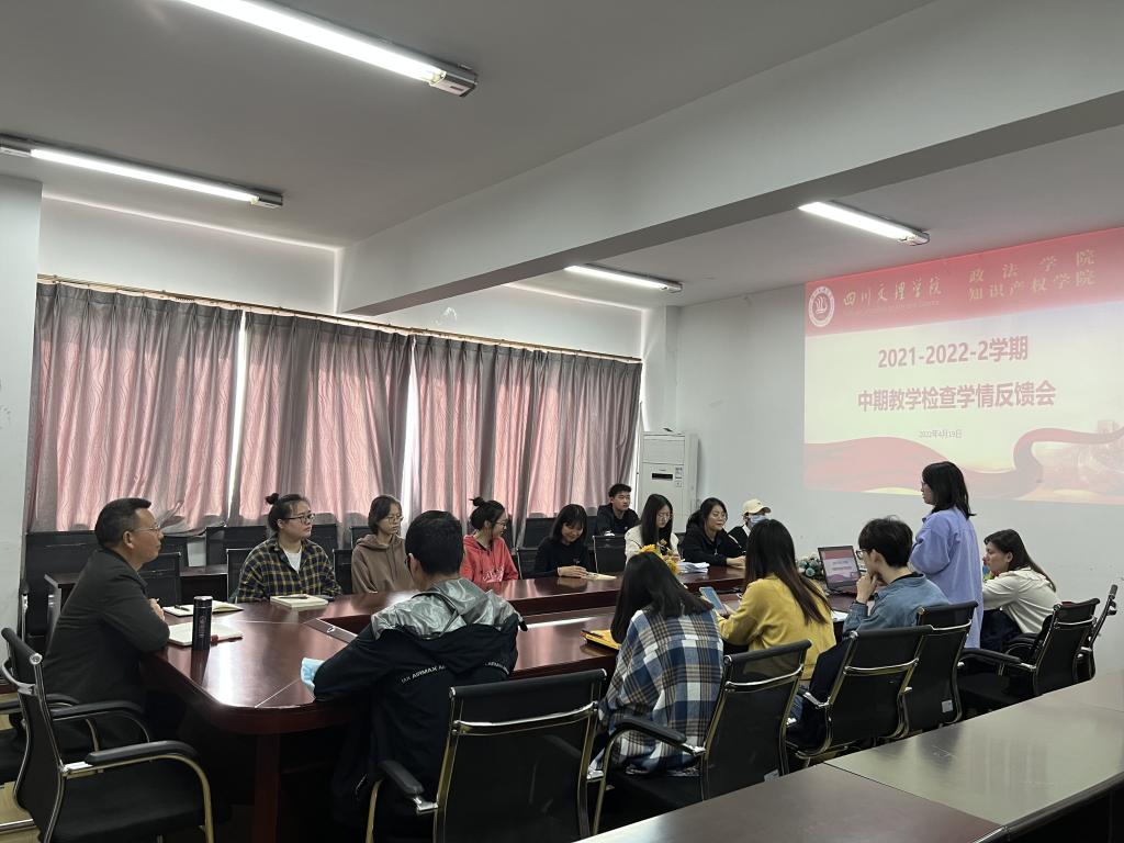 4月19日上午9点20,学院在博文楼611会议室召开了2021-2022-2学期中期教学检查学情反馈会。经理刘长江,副经理何先成,教学秘书李媛媛以及各班的班长、学习委员参与本次会议。刘长江主持会议并讲话。