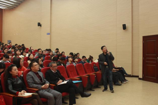 徐教授从“哲学的原意”、“哲学是一种生活方式”和“如何哲学地生活”三个方面,紧紧围绕“哲学与生活”展开详尽的阐释。他对罗素、亚里士多德、柏拉图等西方哲学家的哲学思想提出了自己深刻的见解,也对当代老员工在学习、生活和成长中的迷茫与困惑发表了自己独到的看法。他说生活中处处有哲学,我们要学会用哲学的理念去指导生活---做到理性,冷静地对待生活;做到批判,用批判的精神看待现实中的事物;做到自信,要对自我、对生活充满自信;做到仁爱,用宽容的态度对待他人;做到善于交流,学会平等地与他人交流。他深入浅出的讲解,幽默诙谐的话语,循循善诱的指引,极大的启发师生们对人生的理性思索。讲座已经接近尾声,徐教授师与师生们进行了深入的互动交流,师生们兴致高昂,就学习和生活中遇到的问题纷纷向徐教授请教,徐教授也对其进行了详细地讲解。