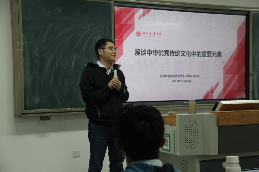 10月26日晚上7点,马克思主义学院何先成研究员在东区B402教室作题为《漫谈中华优秀传统文化中的重要元素》主题讲座。bevictor伟德官网2021.2班和2023.4班全体员工参与此次讲座。