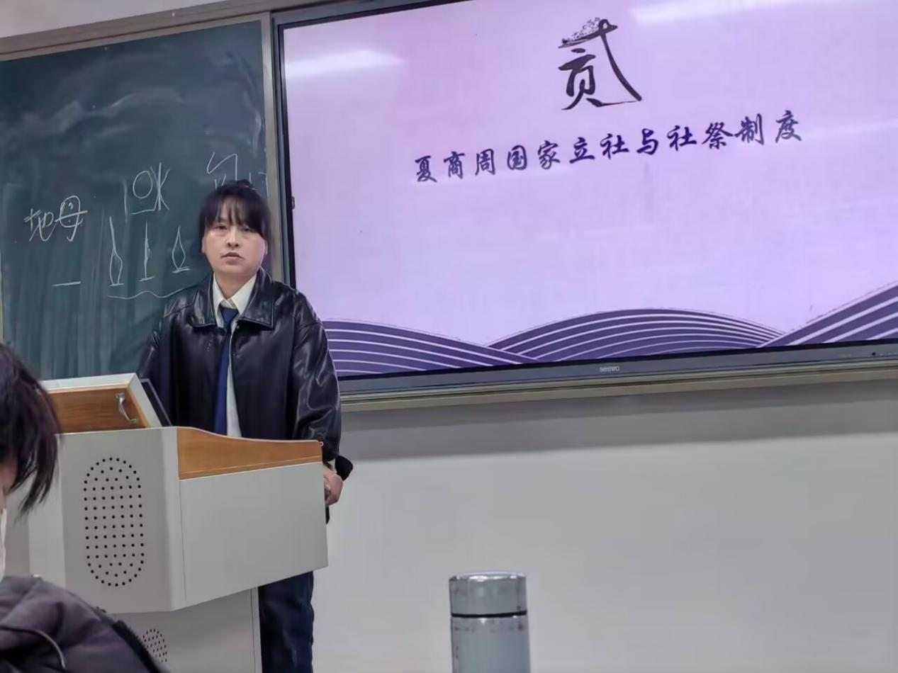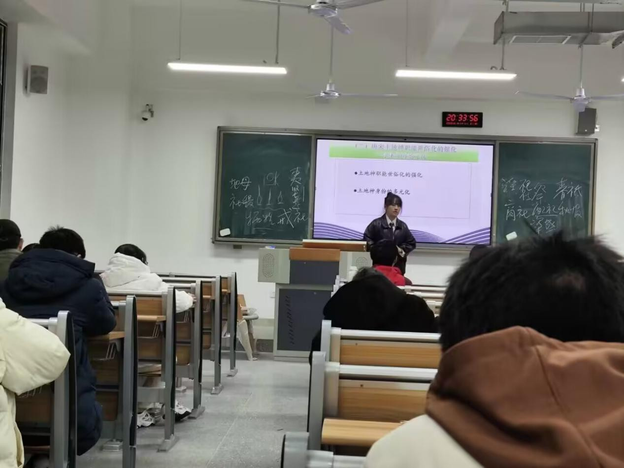 张玲博士分别从社的产生与社神信仰的起源、夏商周国家立社与社祭制度、里社合分与社会社神信仰、唐宋社神信仰变迁与基层社会控制这四个方面进行了深入浅出的讲解。她由甲骨文切入,阐释“社”的含义,而后对社神起源进行分析,并将社神信仰与中国古代基层管理联系到一起,从时间的维度,自夏商周到唐宋逐一分析,清晰展现出社神信仰的变迁过程及与基层管理的关系。她希望,除却传统政治、经济等视角,同学们能够在新史学的影响下,从不同视角关注中国古代基层治理。