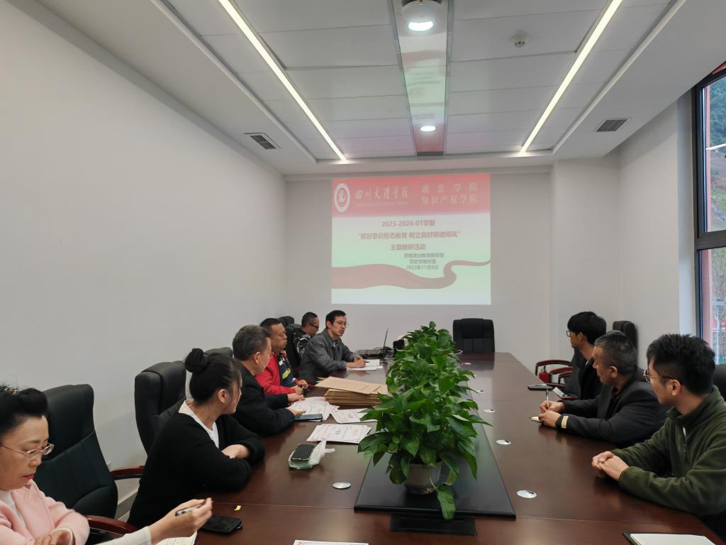 11月8日下午,学院师范专业在东区C301会议室联合召开“抓好意识形态教育 树立良好师德师风”专题教研会。会议由历史学教研室主任王盟副教授主持,思想政治教育教研室、历史学教研室全体专任教师参加。