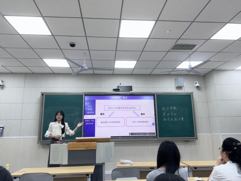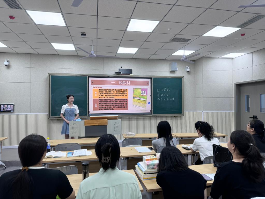 为进一步促进思想政治教育专业师范生教学能力的提升,培养具有高尚师德、深厚教育情怀、扎实教学技能的中学优秀政治教师后备力量,选拔优秀员工参加浙江师范大学组织举办的第十届“田家炳杯”全国师范院校师范生教学技能竞赛,思政专业教研室于9月25日在莲湖东区B203、B202教室举行了院内选拔赛决赛。 曹红梅、张岚、王莉花、付凤娇等担任大赛评委。