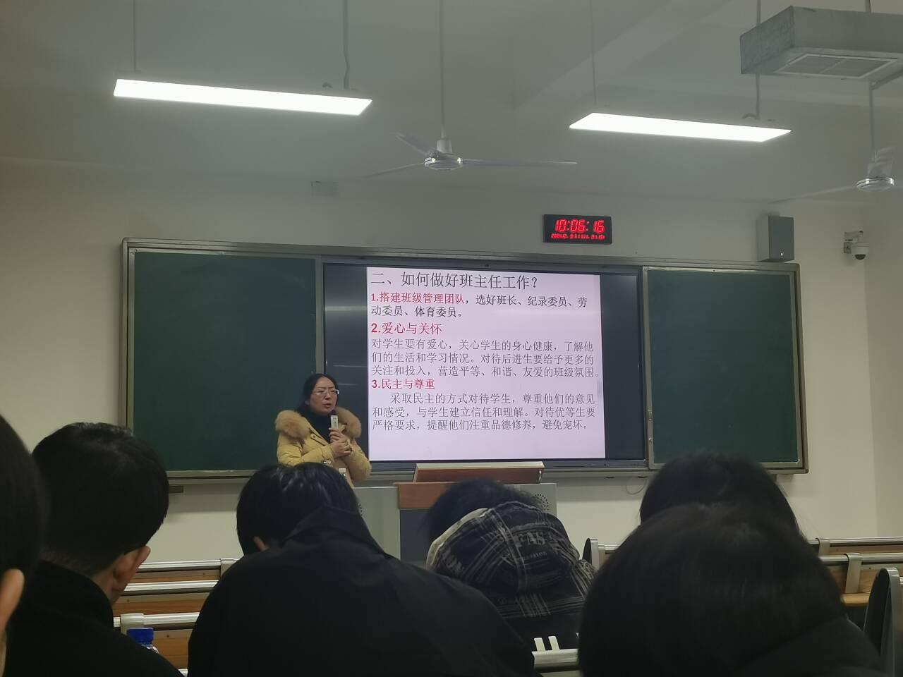 税中容老师结合自身近三十年的从教经历,由“如何成长为一名合格的历史老师”“如何做好班主任工作”“年轻教师如何规范自己的职业发展”这三个方面详细展开,理论和实例相结合,为在场的各位学子传授了宝贵的工作经验。同时,她还鼓励同学们要不断反思、养成和保持终身学习的习惯,在育人过程中实现和提升自我价值,期待同学们将来能够成长为一名优秀的中学历史教师。