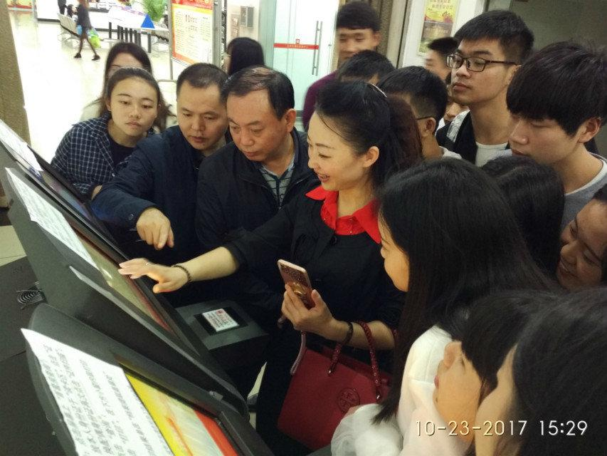 现场集中讲解阶段,由市政务中心的陈尧副主任为大家详细介绍了政务中心工作的历史沿革、主要内容、工作流程、国家要求及发展趋势。围绕“便民服务”,陈主任重点介绍了在行政审批过程中中心率先开创的“并联审批指导制度”及其运行情况,加深了同学们对政府职能转变、法治政府建设、阳光政务、“心连心”服务行政的直观认知。分组现场观摩体验阶段,由并联审批指导科杨科长、督查科两位李科长带领同学们现场观摩体验政务大厅内三层全部窗口的行政审批工作流程,厅内次序井然,处处充满了便民、为民服务的浓郁氛围。然后同学们分为4个小组,到4个窗口服务部门,逐一到每个岗位全程、细致体验行政审批与许可的工作标准与流程。