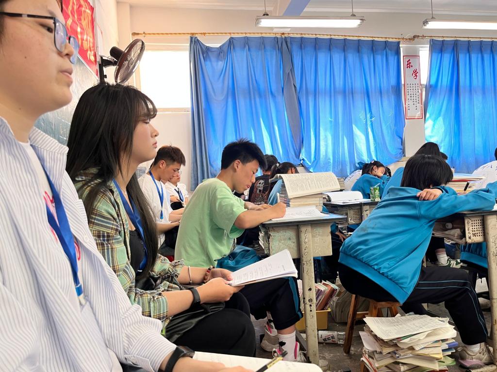 跟班观摩促成长。见习期间,以集中安排、分组见习的方式,明确各小组见习学校指导教师,了解见习流程,增进交流互动。在听课过程中,同学们全神贯注观摩课堂教学,有条不紊地记录教学重点,理清老师教学思路,挖掘教学亮点,为自身教学能力的提高打下坚实基础。课后,与指导老师积极互动、主动交流、相互探讨,从而深化对教师工作的理解和直观的认识。