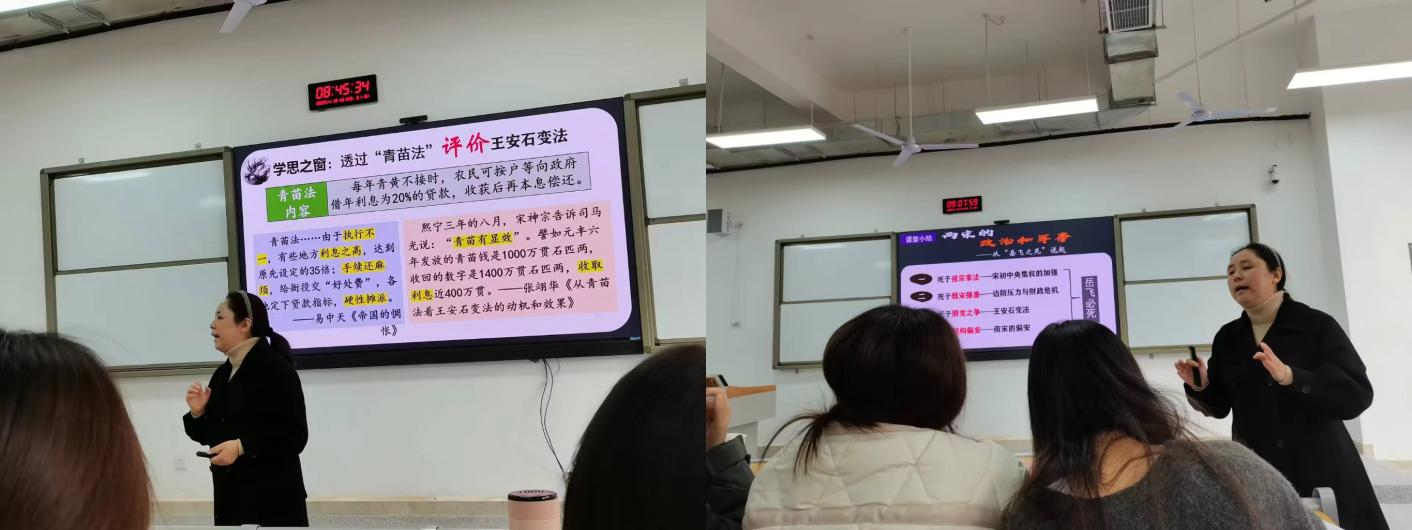 叶多勇老师第一节课讲授的主题是《两宋的政治和军事》,她独特的讲课方式、幽默诙谐的语言以及精美的课件吸引了在座员工的注意力。叶多勇老师使用电影素材《满江红》作为开篇导入,以岳飞之死为线索,分主线和副线,带领员工从岳飞之死来剖析其深层含义,进而探索两宋官僚系统的纵向集权和横向分权、宋朝的“三冗”问题、王安石变法等重要知识点;第二堂课《辽夏金元的统治》,通过课程标准导入课堂,让员工知悉本课学习的重难点。在教学过程中多采用讨论的形式引发员工思考,让员工们跟随着她的思路和步伐,逐层递进的感受着知识的加工和升华。