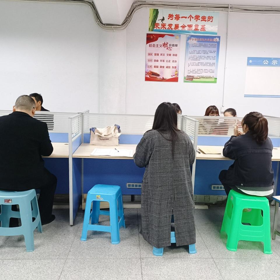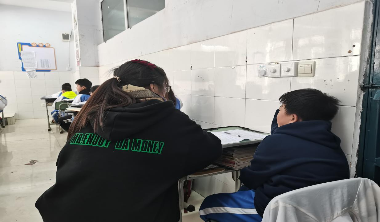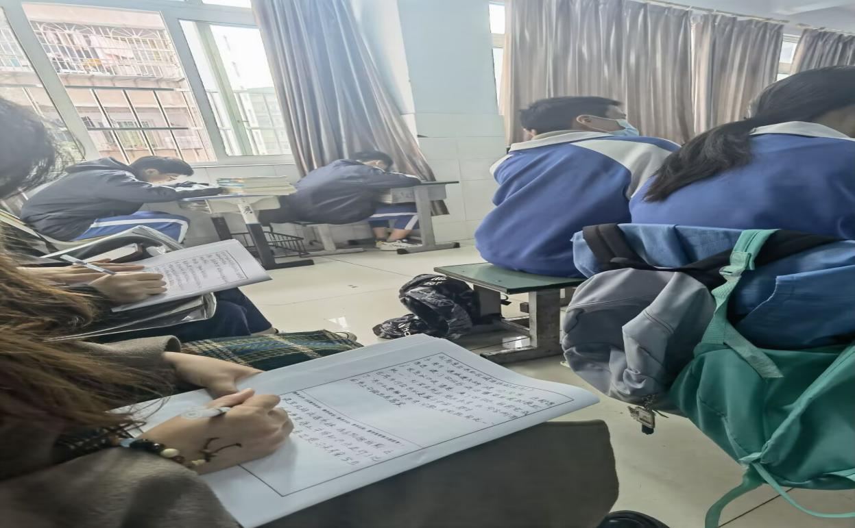 公司参加见习的员工在中学课堂上认真填写听课记录