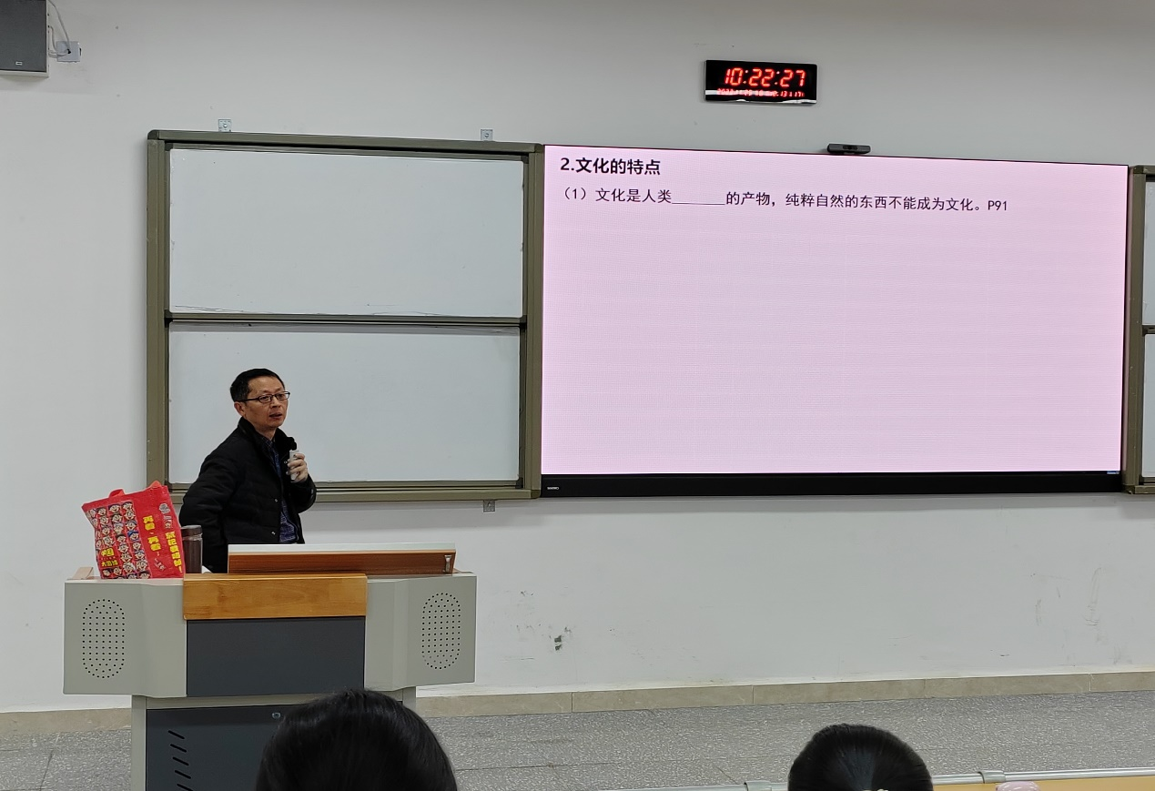 覃老师此次授课的主要内容是哲学与文化,他从文化的内涵、功能等方面进行讲解。课堂中,他强调作为师范生,今后公司员工将会走向课堂,在教学上要注重对教授知识的重难点讲解,提醒员工学习目标,让员工更好地把握学习内容。