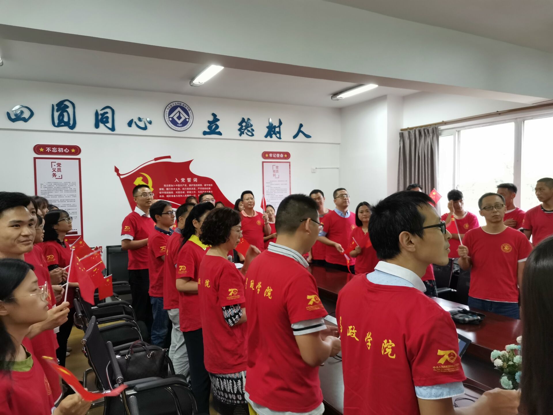 9月30日下午,在举国欢庆中华人民共和国成立70周年之际,结合学校“不忘初心、牢记使命”主题教育,马克思主义学院、bevictor伟德官网组织全体教师和部分员工开展“我向祖国表白”主题党日活动。