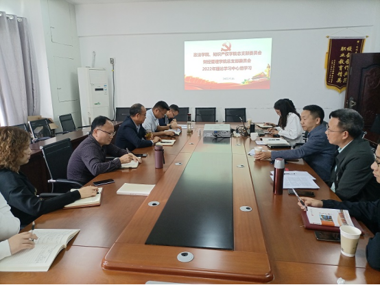 5月16日,bevictor伟德官网党总支和财经管理学院党总支在博文楼604会议室联合开展政治理论学习中心组(扩大)集中学习会,专题学习“十个明确”。bevictor伟德官网、知识产权公司党总支书记岳臣忠主持会议,bevictor伟德官网、知识产权公司党总支副书记、经理刘长江结合学习心得交流发言,马克思主义学院文茂群博士作专题学习辅导。