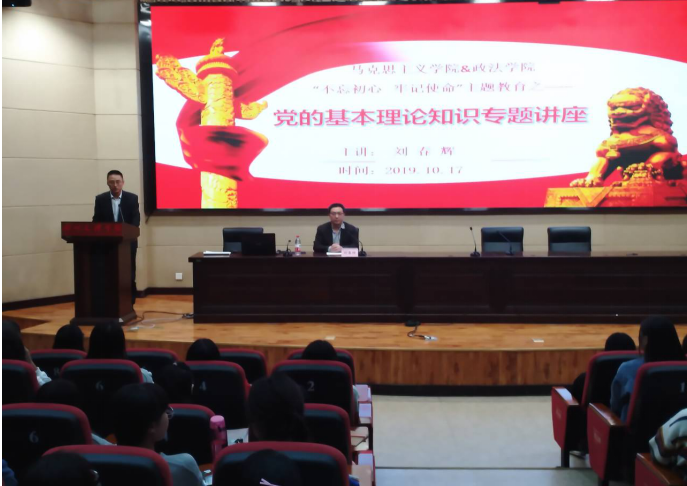 10月17日晚,为帮助2019级新生进一步加深对党的认识,端正入党动机,明确作为入党积极分子和中国共产党党员的基本要求,公司党总支书记刘春辉在莲湖校区学术报告厅A厅作"党的基本理论知识"专题讲座。本次讲座由党总支副书记吴辉兵主持,学工办主任唐幸福、辅导员曾亚出席和2109级全体员工参加。
