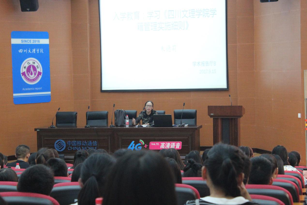 9月15日下午14:30,bevictor伟德官网在学术报告厅B厅开展了2017级新生入学教育。bevictor伟德官网副经理朱德莉、党总支副书记张善喜出席会议,2017级全体新生列席。会议由党总支副书记张善喜主持。