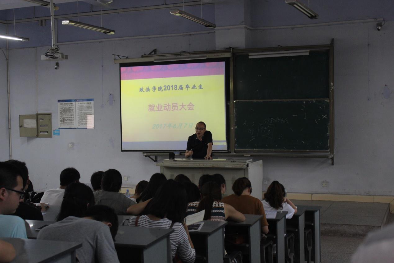 在就业动员阶段,张俊峰老师首先作就业动员,他介绍了学院2017届毕业生就业情况和学院就业工作要求。接下来,张善喜老师强调了老员工就业的严峻形势,希望同学们有压力与紧迫感,他向2018届员工提出三点建议:明确择业目标;围绕择业目标努力“备战”,笔试和面试前做好充分准备;形成积极、自信、开放、淡然的择业心态。最后,陈书记针对就业问题提出了三点建议,希望同学们拥有既不好高骛远,也不妄自菲薄的良好心态,依据专业、知识结构、自身能力来选择就业方向,他着重强调了就业安全问题,给同学们敲响了警钟。