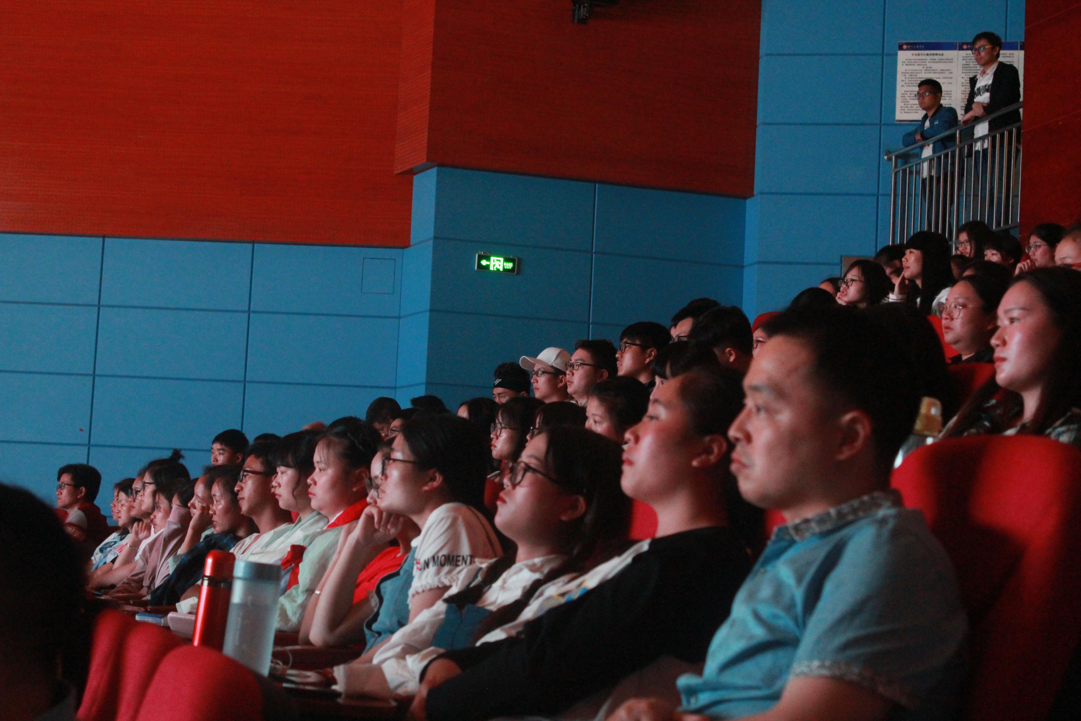 视频里的每个人物都让同学们感触颇深——身患重疾仍将毕生积蓄捐赠助教的卢永根教授;兢兢业业服务人民却英年早逝后四十多万人民为其悼念的廖俊波书记;“无悔身上衣”将生的希望留给小女孩的救火英雄杨科璋;驾驶着战神号战斗机挑战各种极限记录的空军司令刘锐;竞选为十九大中共党代表为促进两岸关系做出卓越贡献的的卢丽安教授……现场不时传来的同学们的掌声。