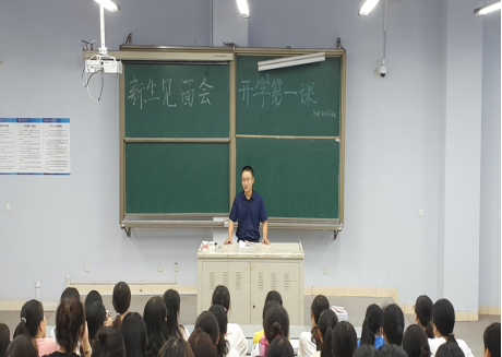 2019年9月12号晚上七点,公司在分别在博文楼523和524教室开展以“新生见面会,开学第一课”为主题的活动,党总支副书记吴辉兵,学工办主任唐幸福,2019级各班辅导员助理和全体新生参加了此次活动。