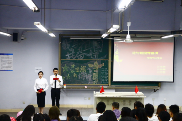 为隆重庆祝中华人民共和国成立70周年,大力唱响礼赞新中国、奋进新时代的青春主旋律,2019年9月7日公司在博文楼124教室举办了以“我与祖国共奋进——国旗下的演讲”为主题的团日活动。学工办主任唐幸福老师、员工会主席蔡润禾、团总支组织部部长徐汝岚等员工干部及2018级全体同学参加了活动。