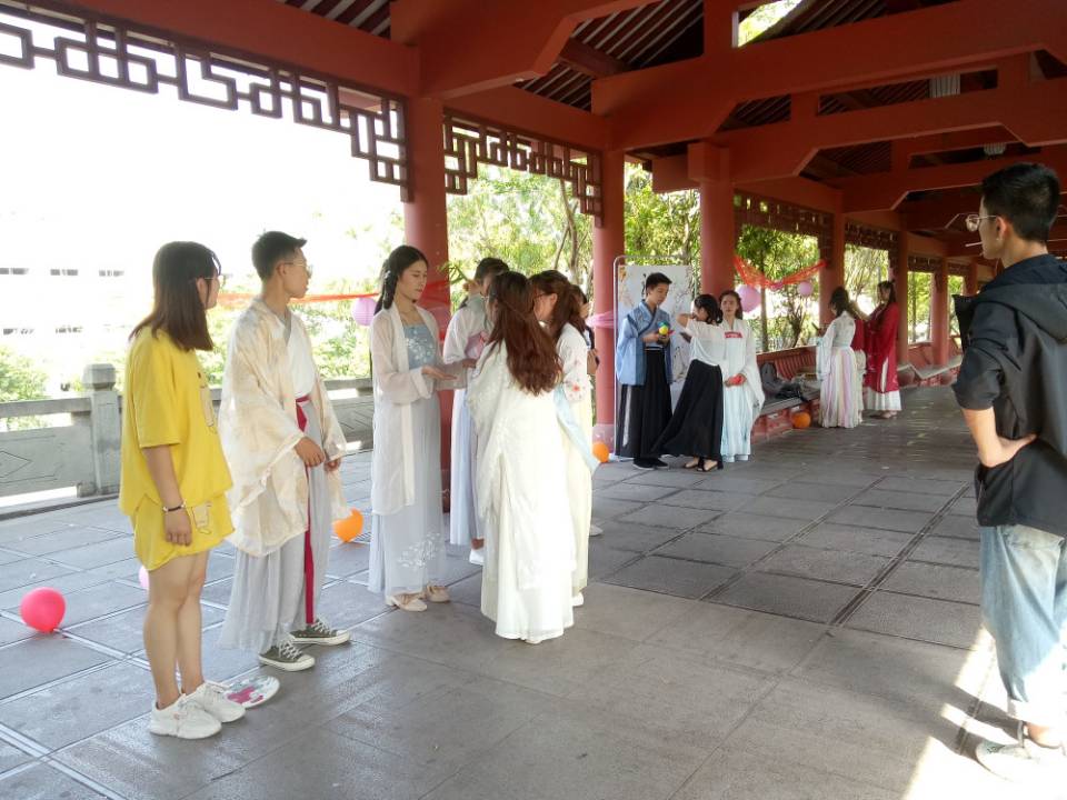 在这次活动中,我们本着宣扬中国传统文化的目的,首先进行了沐兰汤习俗介绍及表演。端午节可算是传统的医药卫生节,沐兰汤可以驱除晦气。作为一个弘扬传统文化的社团,自然不能缺少具有古韵的节目。社团的小哥哥和小姐姐带来歌曲《离骚》、《知否知否应是绿肥红瘦》,他们身着汉服展现出不一样的美。还有小姐姐带来舞蹈《大鱼》,这让我们想起了动漫《大鱼海棠》,优美的舞姿征服了在场的所有人。为了提高活动的娱乐性和参与性,过程中还穿插了投壶、游戏夹弹珠、戏水龙珠、包粽子等活动,努力提高了活动参与率和活动可观性。