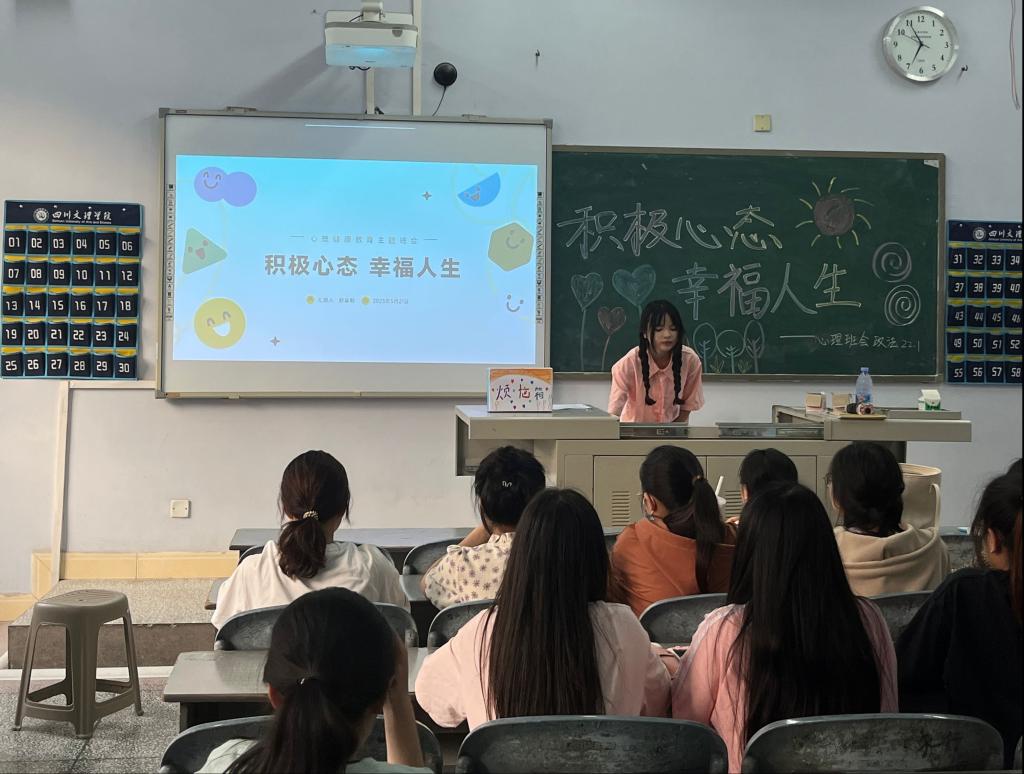 各班心理委员首先详细介绍了此次班会的目的和意义,并通过趣味心理测试、“扔掉你的烦恼”等形式开启了此次主题心理班会。在班会上,各班心理委员就“心理健康的标准界限”“积极心态的表现、作用和必要性”“如何调节情绪,培养积极心态”等内容进行了详细讲解,并和同学们介绍了“转移法”“宣泄法”“激励法”“换位法”等四种调节情绪的方法和管理情绪的ABC理论,希望大家能够从中找到适合自己的情绪调节方法。同时,各班还设置了“幸福健康操”“同桌互夸”“匿名吐槽”等形式多样的互动环节来缓解同学们的压力和焦虑。最后各班辅导员进行总结,要求每位同学要勇敢面对人生各种困难与挑战,蓄积不畏难的攻坚精神,构建起强大的心理韧性,同时各班辅导员还强调了安全教育。