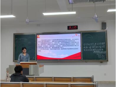 唱完团歌后,同学们观看了习近平总书记同团中央新一届领导班子成员集体谈话的视频。主持人领学了习近平总书记重要讲话精神,同学们结合自己的学习情况,畅谈学习体会与感悟。大家纷纷表示,要始终牢记初心使命,坚定理想信念,练就过硬本领,为全面建成社会主义现代化强国、实现中华民族伟大复兴的中国梦贡献智慧与力量。