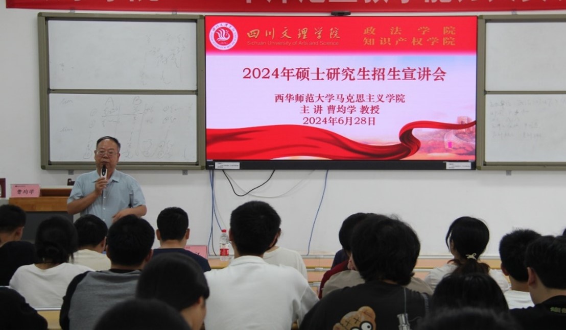 为帮助员工深入了解硕士研究生招生政策、专业设置等信息,6月28日下午,西华师范大学马克思主义学院曹均学教授在东区A318教室作硕士研究生招生宣讲。公司2021级1、2、3班全体同学参加本次宣讲会。