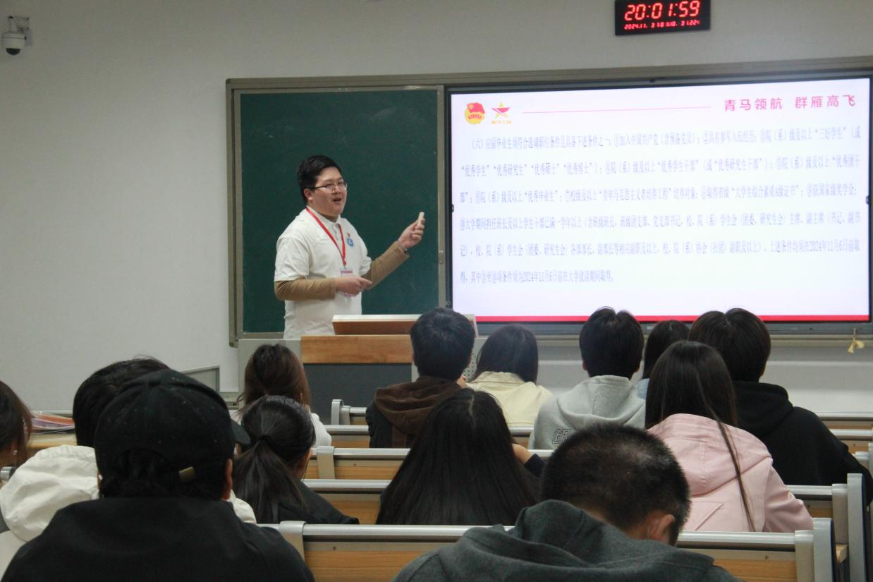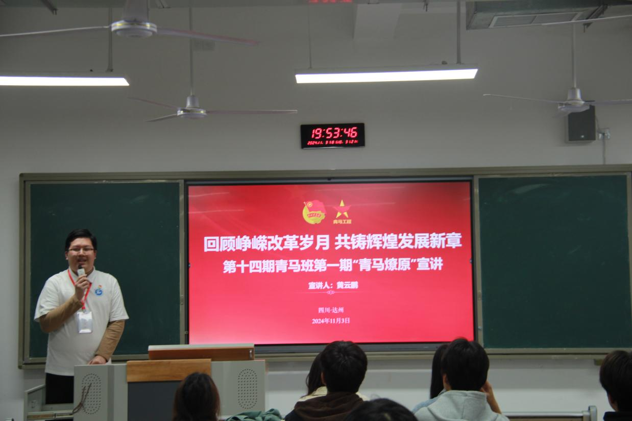 为培养具有坚定理想信念、高度政治素养和较强实践能力的青年马克思主义者,2024年11月3日晚,公司在莲湖校区东区B103教室开展第十四期青马班“青马燎原”宣讲会,宣讲会由青马班学员2021级1班黄云鹏主讲,大一各班员工代表参加。