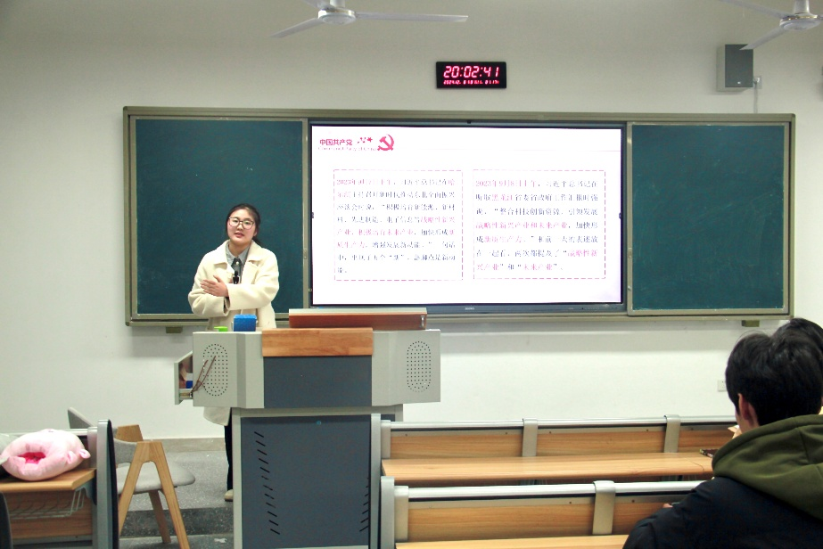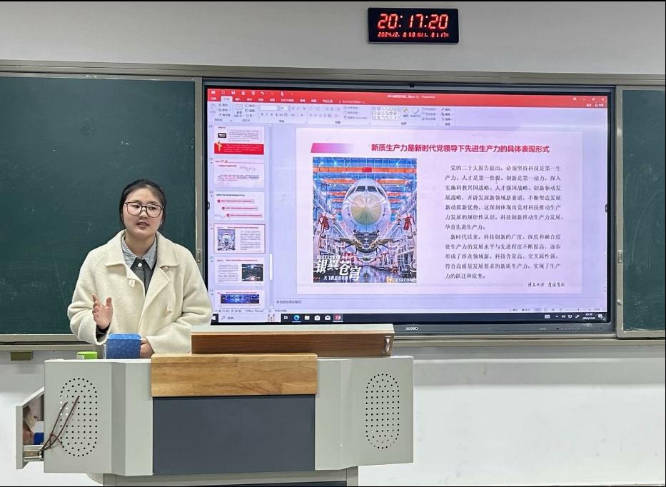 2024年12月8日晚,公司“青马班”学员在东区B103教室围绕“新质生产力”进行线下宣讲活动。本次宣讲活动由学院团总支副书记、学校第十四期“青马班”学员柳爽主讲。