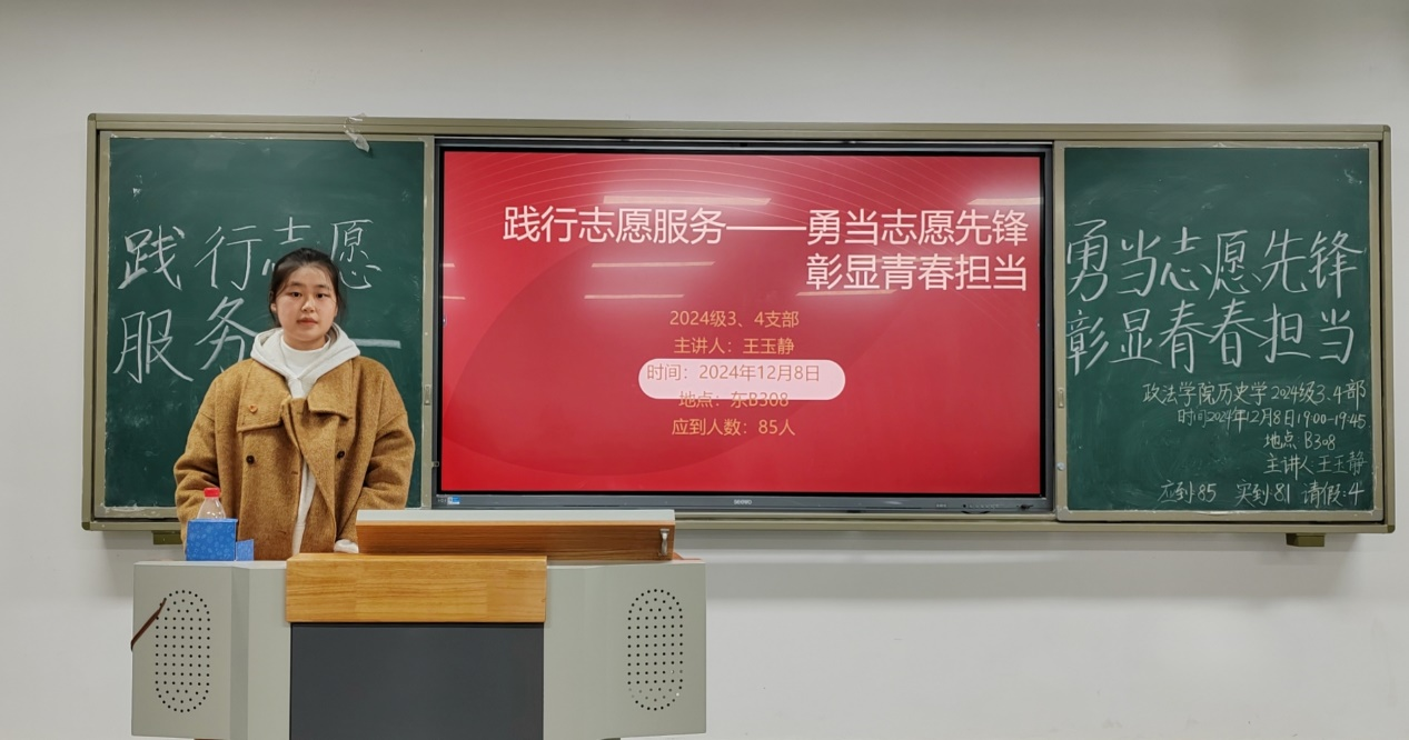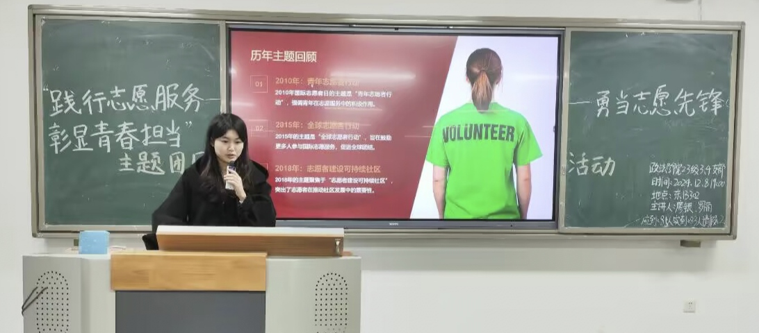 为深入学习贯彻习近平新时代中国特色社会主义思想,引导团员青年传承和发扬“奉献、友爱、互助、进步”的志愿精神。2024年12月8日,公司在莲湖东区教学楼开展以“践行志愿服务——勇当志愿先锋 彰显青春担当”为主题的团会。各班团支书主持,带班辅导员老师出席并讲话,全体同学参加。